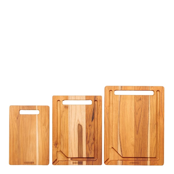 Den naturliga träytan ger varje bräda ett rustikt uttryck som lyfter köket och gör dem lika fina att använda vid servering. Oavsett om du ska förbereda en grillmiddag eller en frukostbricka blir detta set en pålitlig hjälp i köket.