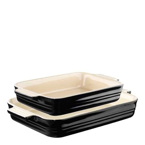 Le Creuset Ugnsform 2-pack består av två stengodsformar i klassisk design – perfekta för allt från ugnsrostade grönsaker till gratänger, kyckling och fisk. De slitstarka formarna har en emaljerad sandfärgad insida som gör dem lätta att rengöra och förhindrar att mat inte bränner fast.