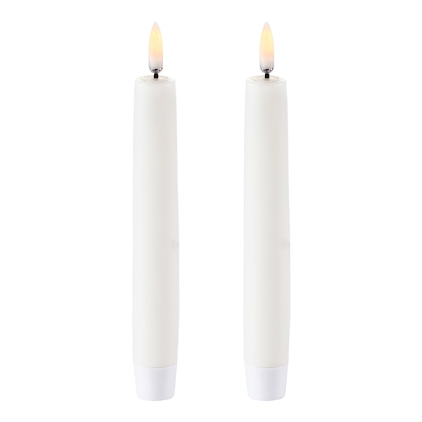 Nu behöver du inte längre oroa dig över om du har glömt att släcka ljuset. Med Piffany Copenhagens batteridrivna kronljus från serien Uyuni får du en mycket verklighetstrogen känsla av levande ljus. Ljusen är beklädda med äkta vax och tack vare den patenterade 3D lågan ger de ett fladdrande sken och varierar i ljusstyrka precis som en äkta låga. Du skapar samma mysiga stämning som med tända ljus samt med fördelen att du också slipper rök och partiklar av sot och kemikalier som frigörs vid användning av traditionella ljus. Kombinera gärna med andra ljus från serien Uyuni som finns i flera olika storlekar och utföranden.