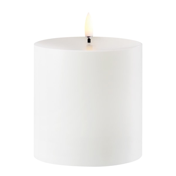 Outdoor LED-blockljus från Uyuni Lighting är designat för att efterlikna det klassiska utseendet och den varma atmosfären hos traditionella stearinljus – utan öppen låga. Den patenterade 3D-lågan skapar en realistisk glöd utan att producera sot eller kemikalier.