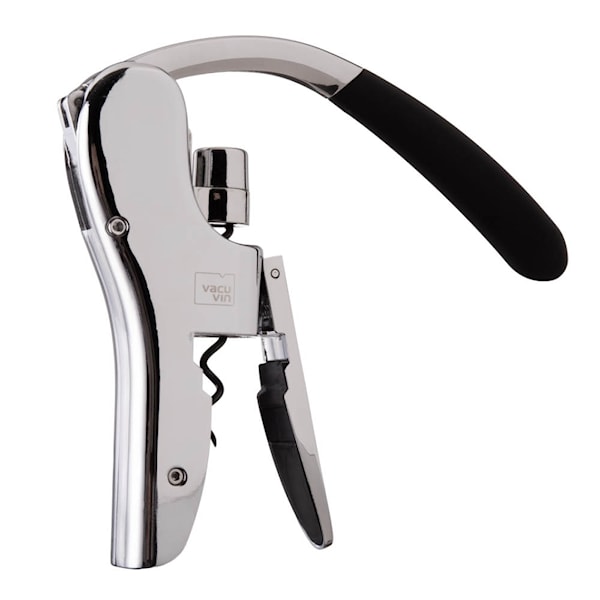 Vacu Vin Vertikal korkskruv i rostfritt stål är framtagen för effektiv och kontrollerad öppning av vinflaskor. Hävarmsmekanismen minskar kraftbehovet och säkerställer en jämn utdragning av korken.