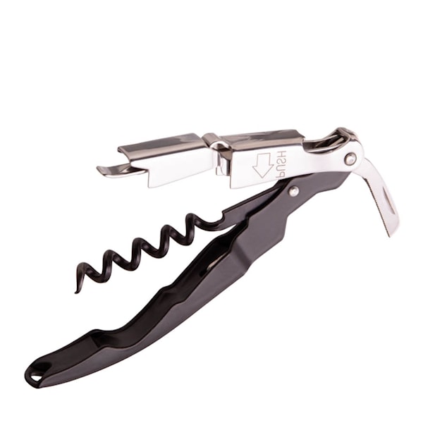 Den inbyggda PUSH-mekanismen säkerställer en jämn utdragning av korken med god kontroll. Produkten är kompatibel med både naturkork och syntetisk kork.