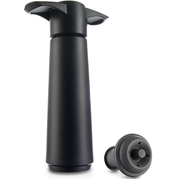 Vinbesparingspumpen från Vacu Vin extraherar luften från öppnade flaskor och försluter dem igen med en återanvändbar gummipropp. Vakuumet fördröjer oxidationsprocessen för att bevara vinet under en längre tid. Placera vakuumproppen i flaskan och pumpa tills den ger ett "klick"-ljud. Wine Saver har sina rötter i den första versionen som skapades 1986. Wine Saver Concerto är designad med ett ergonomiskt och elegant grepp. Wine Saver Stainless Steel är premiumutgåvan av originalet.