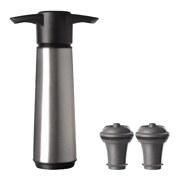 Wine Saver & 2 Stoppere, från Vacu Vin är vinbesparingspumpen tar bort luften från öppnade flaskor och förseglar dem sedan med en återanvändbar gummipropp. Genom att skapa ett vakuum fördröjer den oxidationen och gör det möjligt att bevara vinet längre. För att använda den, placera vakuumproppen i flaskan och pumpa tills du hör ett "klick"-ljud. Wine Saver har sitt ursprung från den första versionen som skapades 1986. Wine Saver Concerto har en design med ett ergonomiskt och elegant grepp, medan Wine Saver Stainless Steel är en premiumversion av originalet.