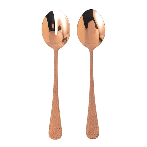 Fenix salladsbestick i koppar från Vargen & Thor är ett perfekt val för dig som vill kombinera stil och funktion. Setet består av två delar, båda utformade med en unik hamrad textur som tillför en extra dimension till dukningen. Den detaljrika finishen ger ett rustikt men samtidigt sofistikerat uttryck som imponerar på gästerna.
