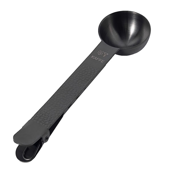 Med sin moderna och eleganta design tillför kaffeskeden ett stilfullt inslag till köket. Den praktiska klämman på skeden gör det enkelt att försluta kaffepåsen efter användning, vilket hjälper till att hålla kaffet fräscht längre. Detta är en funktionell och estetiskt tilltalande lösning för alla som vill bevara kaffets smak och arom.