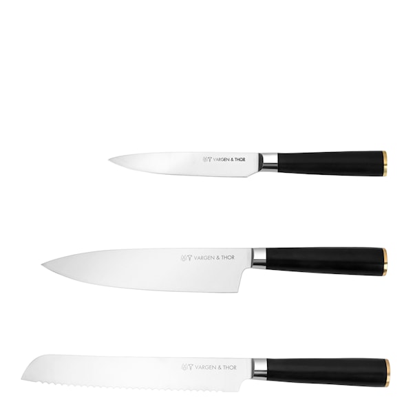 Vargavinter - ett grymt knivset i 3 delar från Vargen & Thor. Under devisen snyggt, skarpt och hållbart har Vargen och Thor skapat knivar som är i toppklass, och här kommer det i ett set med kockkniv, grönsakskniv och brödkniv. Ett set för alla tillfällen – skär lätt upp frukostens färska frallor, hacka upp grönsaker till grytan eller rensa höstens svamp.