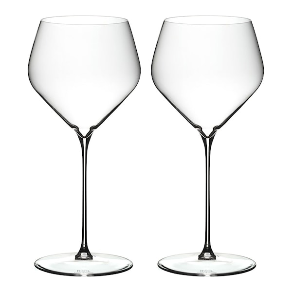 Riedels serie Veloce har fått sitt namn från italienskans ord för snabb. De vackra vinglasen utmärker sig med en kupa i tunn kristall och en smal, hög stam. Den eleganta känslan förstärks av att kuporna har en diamantformad design. Precis som Riedels andra glasserier är Veloce-glasen druvspecifika. På foten av varje glas finns en märkning som säger vilken druva kupan passar till.