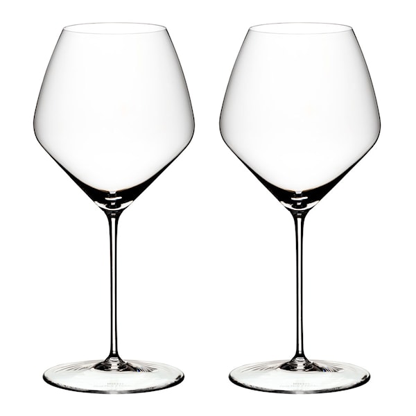 Riedels serie Veloce har fått sitt namn från italienskans ord för snabb. De vackra vinglasen utmärker sig med en kupa i tunn kristall och en smal, hög stam. Den eleganta känslan förstärks av att kuporna har en diamantformad design. Precis som Riedels andra glasserier är Veloce-glasen druvspecifika. På foten av varje glas finns en märkning som säger vilken druva kupan passar till.