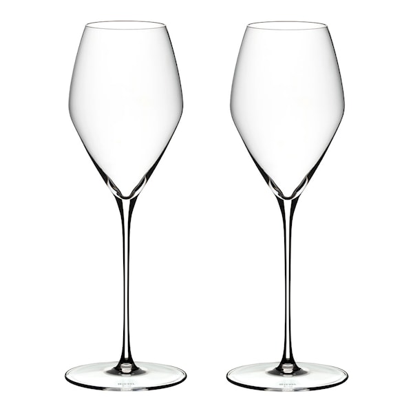 Riedels serie Veloce har fått sitt namn från italienskans ord för snabb. De vackra vinglasen utmärker sig med en kupa i tunn kristall och en smal, hög stam. Den eleganta känslan förstärks av att kuporna har en diamantformad design. Precis som Riedels andra glasserier är Veloce-glasen druvspecifika. På foten av varje glas finns en märkning som säger vilken druva kupan passar till.