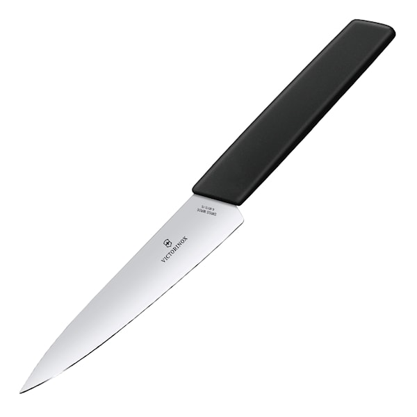 Grönsakskniv med blad i rostfritt stål på 15 cm och ett bekvämt handtag i Fibrox från Victorinox Swiss Modern-serie.