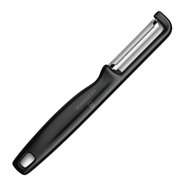 Iota grönsaksskalare från Victorinox är designad med fokus på både precision och komfort. Det vågiga bladet i rostfritt stål ger en skonsam och effektiv skalning av mjuka råvaror, och är särskilt praktiskt för frukt med tunn och känslig skal, som tomater eller persikor.