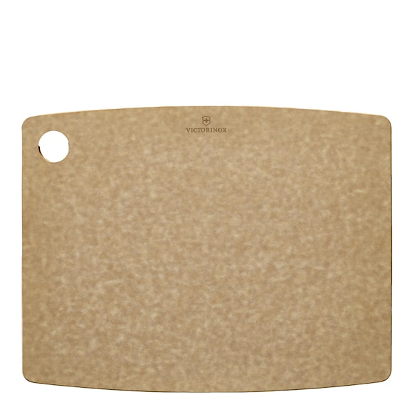 Kitchen Series skärbräda 36,8x28,5 cm brun från Victorinox gör vardagliga köksuppgifter roligare med sin stiliga och hållbara design. Tillverkad av papperskompositmaterial är denna skärbräda både elegant och tunn, men ändå mycket hållbar. Perfekt för både hackning under matlagning och servering av måltider. Skärbrädan tål maskindisk och är värmetålig upp till 175°C/350°F. Den levereras med en garanti på 2 år från inköpsdatum för tillverknings- och materialfel.