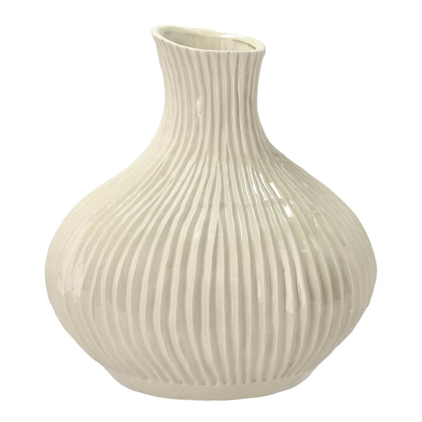 Villa Collection Ekvas 31x33,5 cm är ett vackert exempel på nordisk design, skapad med tanke på både estetik och funktionalitet. Den handgjorda vasen har en reaktiv glasyr som gör varje vas unik, samtidigt som den krämfärgade ytan framhäver en känsla av lugn och harmoni. Den stilrena designen passar lika bra för att arrangera blommor som för att stå ensam som ett dekorativt element i hemmet.
