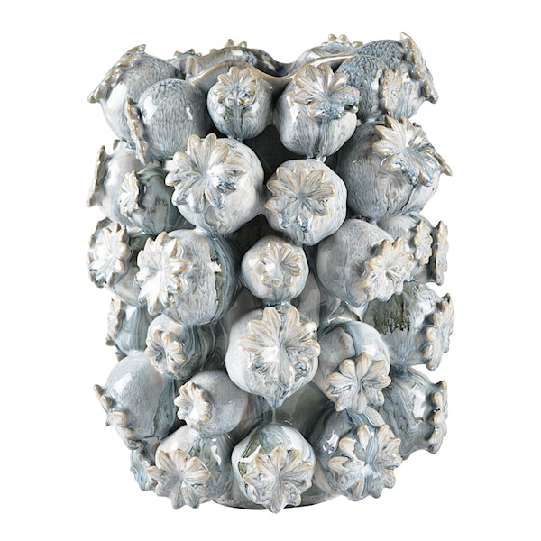 Elha Vas 32 cm, från Villa Collection, är en imponerande och skulptural stengodsvas som fungerar både som en imponerande behållare för stora blombuketter och som en dekorativ pjäs i sig själv. Vasen är utsmyckad med vackra figurer formade som vallmofröpistiller, vilka är handformade och applicerade för att ge en unik och konstnärlig touch.