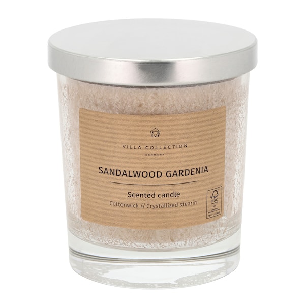 Doftljus av glas med metalllock från Villa Collection Denmark. Ljuset är tillverkat av krystalliserat stearin och sprider en underbar doft där du placerar det. Du kan till exempel använda det för att skapa en härlig spa-atmosfär på badrummet.