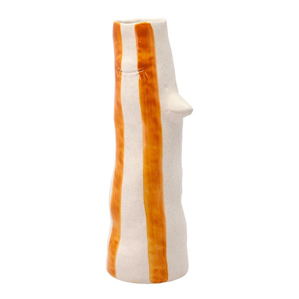 Från Villa Collection kommer Styles Vasen med näbb och ögonfransar, med en höjd på 34 cm. Denna vackra vas är designad med en unik näbbs form och ögonfransar för att skapa ett humoristiskt och livsbejakande uttryck. Den ljusa vasen är dekorerad med handmålade bruna ränder som ger den en charmig karaktär. Med sitt lekfulla utseende och livsbejakande färger sprider denna vas en positiv stämning och blir en underbar prydnad i ditt hem.