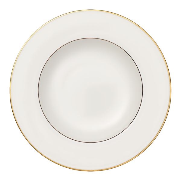 Villeroy & Boch Anmut Gold djup tallrik 24 cm kombinerar tidlös design med lyxig detaljering och tillför dukningen en känsla av guld och elegans. Tallriken är tillverkad i exklusivt Premium Bone Porcelain och har en handapplicerad kant i 20 karat guld, förseglad med Villeroy & Bochs inglaze-teknik som skyddar metallen utan att kompromissa med estetiken.