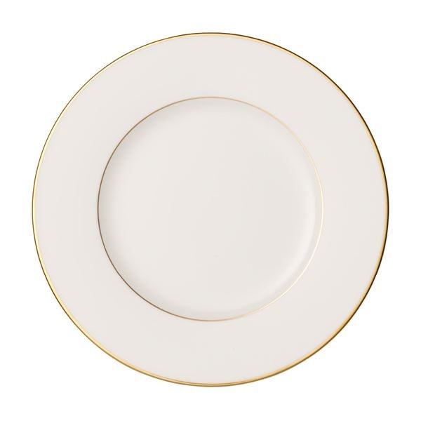 Villeroy & Boch Anmut Gold tallrik 22 cm är en elegant förrätts- eller frukosttallrik som förhöjer varje servering. Den handapplicerade guldkanten i 20 karat är förseglad med inglaze-teknik, vilket gör att den behåller sin glans – även efter många diskar.