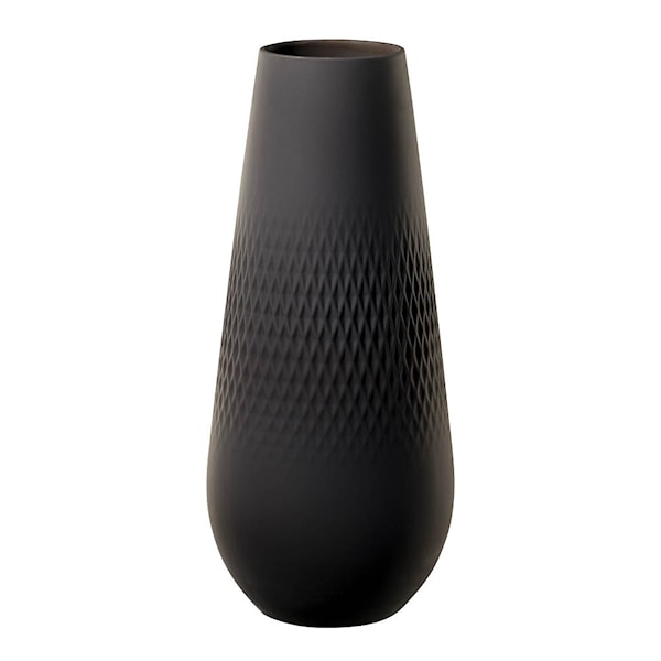 Manufacture Collier Noir Carre vas från Villeroy & Boch är tillverkad i svart porslin med en karakteristisk struktur och modern form. Den slanka, höga silhuetten på 26 cm och den fyrkantiga formen gör den idealisk både för dekorativa blommor och som ett fristående designelement.