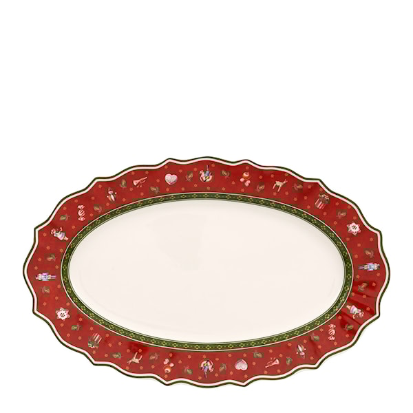 Toy's Delight serveringsfat 38x23,5 cm i röd och vit från Villeroy & Boch är ett vackert och nostalgiskt serveringsfat som tillför julens magi till ditt dukade bord. Med sina lekfulla motiv i rött, grönt och vitt, fångar detta fat den traditionella julstämningen och väcker minnen från barndomens jular. Som en del av Toy’s Delight-kollektionen kombinerar fatet en festlig design med klassisk charm som gör varje måltid speciell.