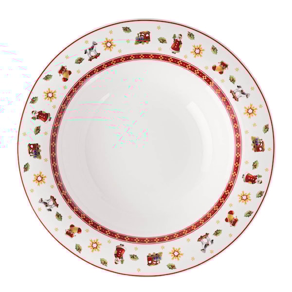 Toy's Delight Special djup tallrik 23 cm med vit kant från Villeroy & Boch ger julbordet ett klassiskt och stämningsfullt uttryck. Som en del av Toy's Delight-kollektionen är denna tallrik dekorerad med charmiga julmotiv i rött, grönt och vitt som väcker minnen av tidigare julfiranden. Den vita kanten tillför en elegant touch, och den noggrant utformade dekoren gör tallriken till ett blickfång på bordet. Tillverkad i Tyskland med gedigen kvalitet är denna tallrik ett perfekt val för högtiden och skapar en inbjudande atmosfär som hela familjen kan njuta av, år efter år.