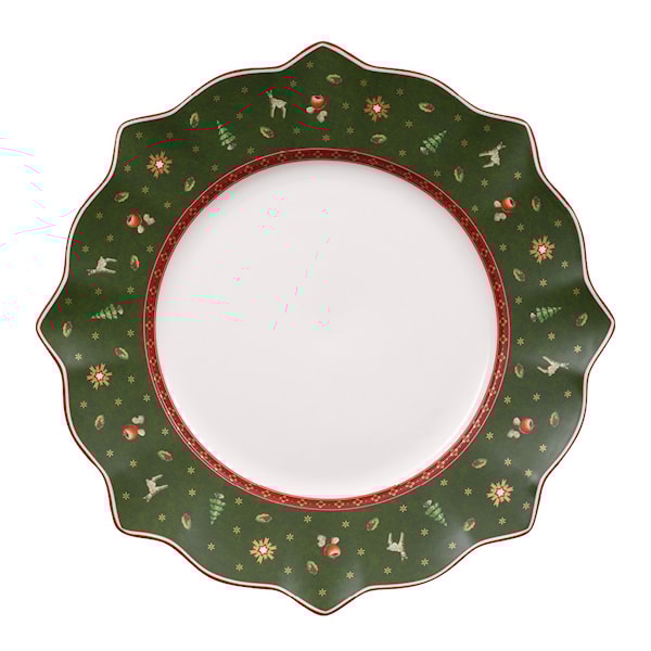 Toy's Delight tallrik 28 cm från Villeroy & Boch är en förtjusande och nostalgisk tallrik som tillför en festlig känsla till varje dukning. Med sina lekfulla motiv i rött, grönt och vitt, väcker denna tallrik minnen från barndomens jular och skapar en varm och inbjudande stämning vid bordet. Som en del av Toy’s Delight-kollektionen kombinerar den klassisk julestetik med högkvalitativt porslin, ett kännetecken för Villeroy & Boch sedan 1748.