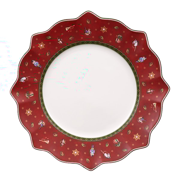 Toy's Delight tallrik 28 cm från Villeroy & Boch är en förtjusande och nostalgisk tallrik som tillför en festlig känsla till varje dukning. Med sina lekfulla motiv i rött, grönt och vitt, väcker denna tallrik minnen från barndomens jular och skapar en varm och inbjudande stämning vid bordet. Som en del av Toy’s Delight-kollektionen kombinerar den klassisk julestetik med högkvalitativt porslin, ett kännetecken för Villeroy & Boch sedan 1748.
