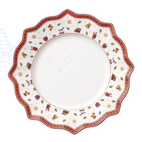 Toy's Delight tallrik 28 cm från Villeroy & Boch är en förtjusande och nostalgisk tallrik som tillför en festlig känsla till varje dukning. Med sina lekfulla motiv i rött, grönt och vitt, väcker denna tallrik minnen från barndomens jular och skapar en varm och inbjudande stämning vid bordet. Som en del av Toy’s Delight-kollektionen kombinerar den klassisk julestetik med högkvalitativt porslin, ett kännetecken för Villeroy & Boch sedan 1748.