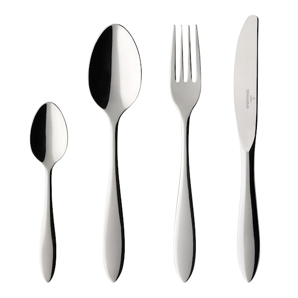 Detta bestickset i serien Arthur från Villeroy & Boch med mjuka linjer och tidlös design är utmärkt för att komplettera alla bordsdukningar, både till vardag och till fest. Setet i 24 delar för upp till sex personer adderar en tidlös elegans till borddukningen. Passar även utmärkt ihop med de eleganta porslinsserierna från Villeroy & Boch- exempelvis Royal och Manoir.