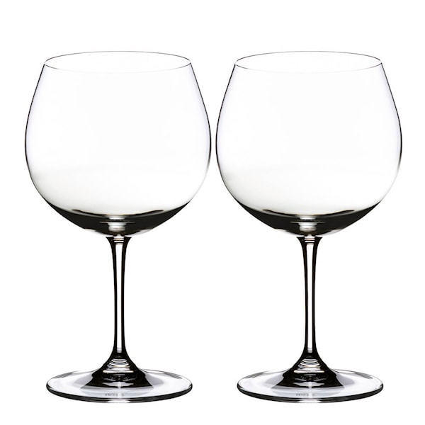 Vinglas i 2-pack från Riedels serie Vinum. Det här glaset passar utmärkt till ekfatslagrade Chardonnayviner med låg syra och fyllig frukt. Vinglaset har en stor kupa med vid öppning. Formen gör att drycken får mycket luft, vilket i sin tur förstärker vinets aromer och generösa ekfatstoner. För den som gillar ekad Chardonnay är glaset ett måste. Här känner du en oerhörd skillnad mot att dricka i ett vanligt glas.