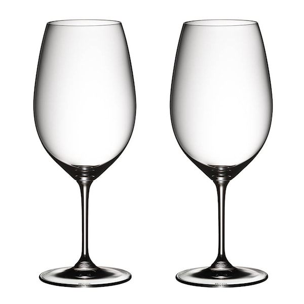 Vinglas i 2-pack från Riedels serie Vinum. Det som skiljer det här vinglaset från Cabernet/Merlotglaset är att kupan är högre och har en mindre öppning. Glaset passar till fylliga, aromatiska viner med en måttlig mängd tanniner så som nya världens Shiraz. Formen på kupan förstärker doften och den generösa smaken, vilket ger vinet en perfekt balans mellan frukt, syra och strävhet.