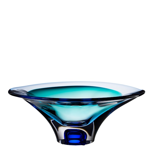 Vision skål från Kosta Boda, formgiven av Göran Wärff. En vacker blå skål där glasets unika rörelse skapar liv. Skålen är munblåst i Kosta, här i Sverige.