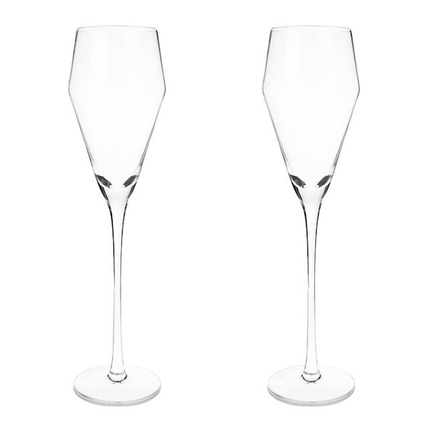 Setet innehåller två glas på 24 cl, tillverkade i klart, blyfritt kristall med hög stjälk för balanserad och elegant servering. Passar utmärkt till prosecco, cava och champagne. Handdisk rekommenderas för att bevara kvaliteten.