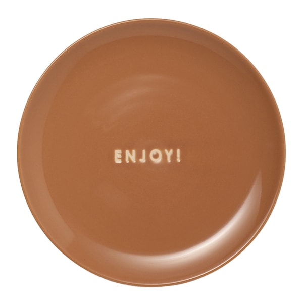 Denna assiett från Vondels kombinerar hantverkskänsla med funktionalitet. Trycket är stämplat för hand, vilket gör varje exemplar unikt. Den varma färgen tillför karaktär till både frukostbordet och festdukningen.