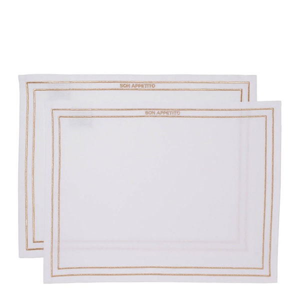 Vondels Bordstabletter BON APPETITO 2-pack vit är ett elegant tillskott till din dukning. Med sitt vita utförande och diskreta text får du en ren och stilfull grund som lyfter porslin och servetter – oavsett färgval.