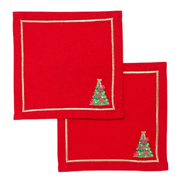 Vondels Christmas Party glasunderlägg Christmas Tree 14x14 cm 2-pack, röd, är en stilren och festlig detalj som ger varje juldukning ett extra lager av värme och elegans. De broderade julgranarna på textilen ger ett tidlöst och charmigt uttryck.