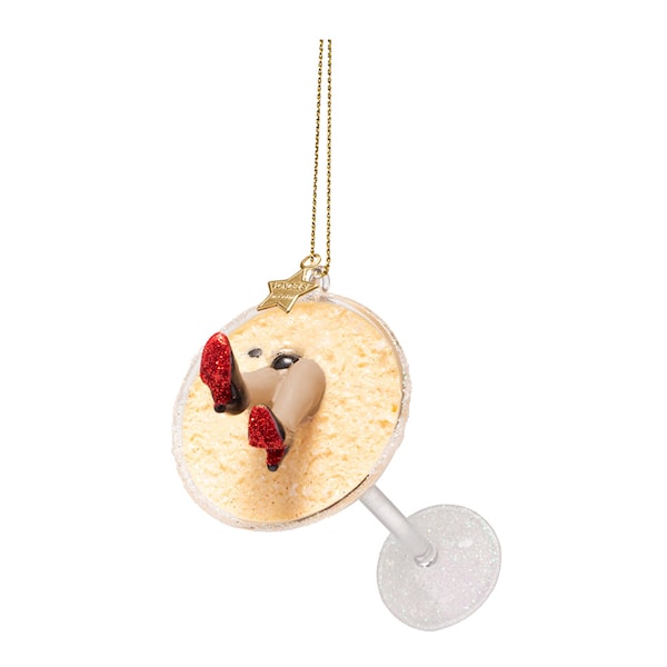 Sätt en glamourös touch på granen med detta spektakulära julgranshänge från Vondels. Formen föreställer ett klassiskt espresso martini-glas med ett par stiliga klackar – allt tillverkat i munblåst glas och handmålat med stor detaljrikedom.