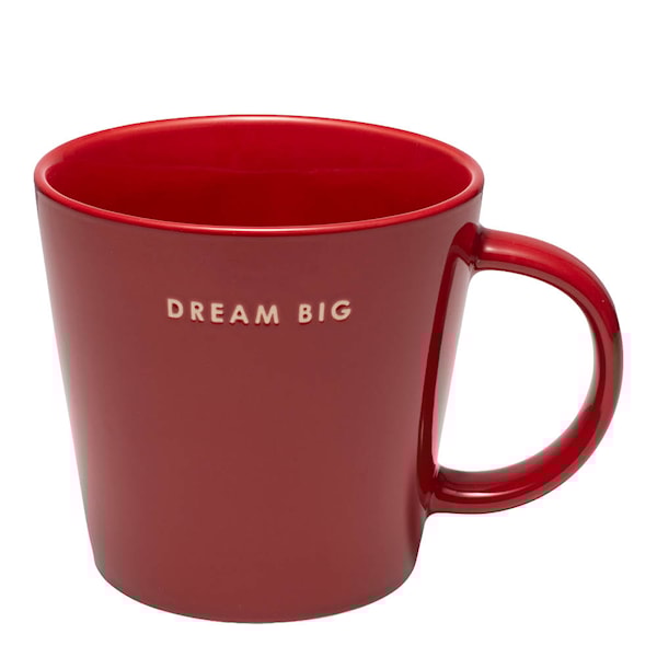 Vondels Table Talk mugg XL Dream Big 50 cl i rött är ett uttrycksfullt inslag i vardagen – med plats för både stora drycker och stora tankar. Den handstämplade texten ger varje kopp sin egen personlighet, medan den röda färgen väcker liv och värme i varje stund.