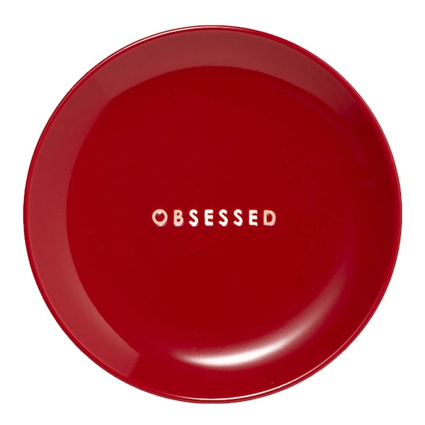 Vondels Table Talk tallrik OBSESSED 16 cm, röd, är ett charmigt tillskott till köksskåpet. Den lekfulla, handstämplade texten tillsammans med den intensiva färgen skapar en unik helhet som passar perfekt för både vardag och fest.