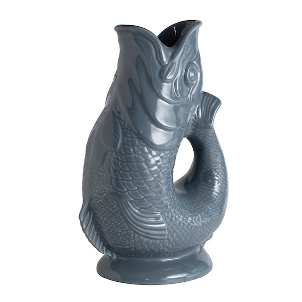Handgjord i fabriken i Stoke-on-Trent, England, tillverkas kannan fortfarande med stor omsorg av glaserad keramik och finns nu i sex moderna färger som enkelt blir en blickfångare i varje dukning. Med sina mångsidiga användningsområden kan Fish Jug användas som en lekfull blomvas, verktygshållare, eller för att servera vatten, vin, juice eller mjölk – eller varför inte som en dekorativ pjäs i sig själv? Finns i två storlekar, 0,6 liter och 1,2 liter, vilket ger valmöjligheter beroende på behov och preferens. För att bevara dess skönhet rekommenderas handtvätt. Fortfarande stolt producerad i England, är Fish Jug ett tidlöst tillskott till varje hem, perfekt för den som uppskattar unik design och kvalitetshantverk.