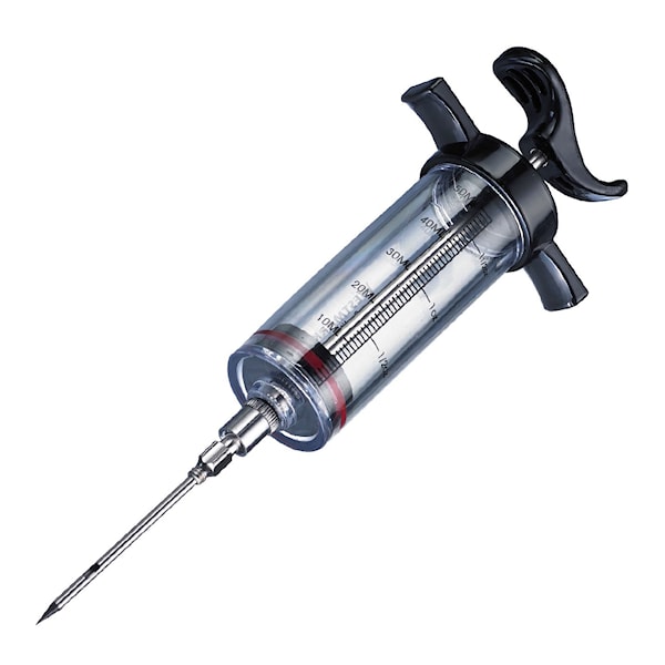 Marinadspruta från tyska Westmark. Fyll med din favoritmarinad, stick in i köttet eller fågeln och tryck till för ett supersaftigt och gott resultat! Nålen är mycket vass och är lätt att få in i köttet och enkel att ta av sedan. Köttet blir mycket mört och gott rakt igenom och inte bara utanpå. Marinadsprutan har en måttskala och rymmer som mest 50 ml.