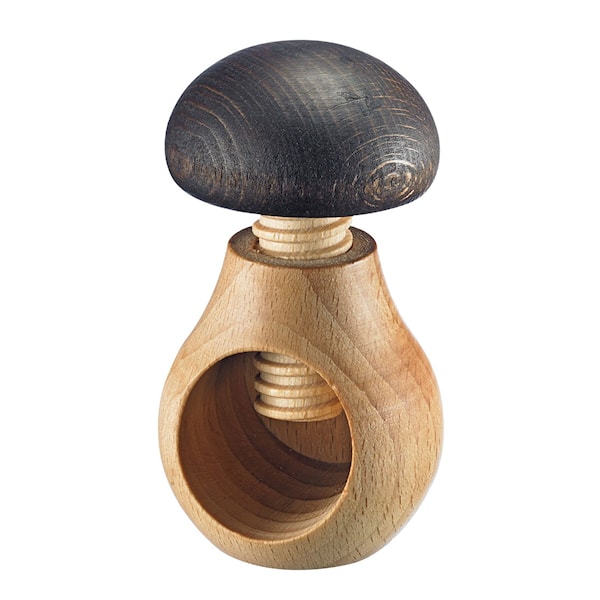 Med nötknäckaren Holzi blir nöten inte svår att knäcka. Lägg in nöten och vrid på överdelen, smidigt och lätt knäcks skalet på nöten. Nötknäckaren är formad som en svamp, blir en charmig dekoration att förgylla ditt hem med.