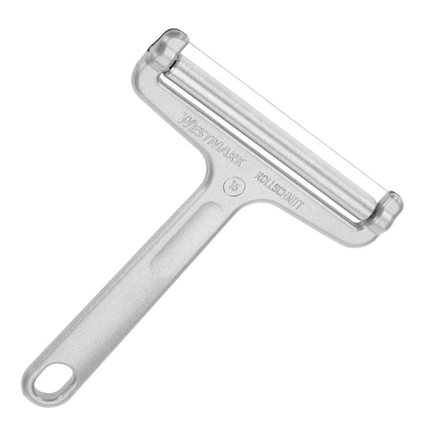 Med Rollschnitt osthyvel från Westmark bestämmer du själv tjockleken på ostskivorna genom att variera vinkeln när du hyvlar osten. Rollschnitt ostyhyvel är idealisk för halvhårda ostar. Osthyveln har ett praktiskt hål för upphängning när du inte använder den.