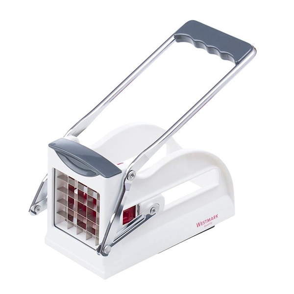 Pommesfritesskärare Easy Stix från Westmark är kraftfull och enkel att använda. Du gör lätt hemmagjorda pommes frites eller snyggt skurna grönsaker till dippen i en handvändning. Easy Stix har ett brett och stadigt handtag i metall och sugfötter undertill som gör att den står stadigt när du arbetar. Tre skärblad i rostfritt stål medföljer, 12x12 mm, 10x10 mm och 9x9 mm så att du enkelt kan välja det måttet som varje tillfälle.