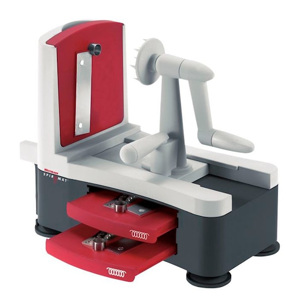 Med Spiromat från Westmark är det lätt att äta hälsosam kost. Du skivar frukt och grönt på nolltid med den multifunktionella grönsakssvarven. Du kan enkelt göra spiraler, ringar eller skivor till både goda vegetariska rätter men även till dekoration. Spiromaten är idealisk för morötter, äpplen, gurka, potatis, kål mm. Tre skivknivar i rostfritt stål medföljer och Spiromaten står stadigt på halkfria fötter för säker användning. Tål maskindisk.