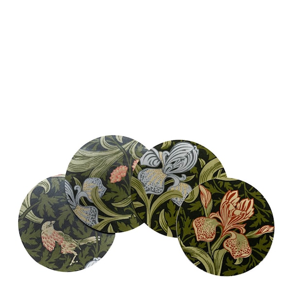 William Morris Iris glasunderlägg 4-pack i grönt är en vacker kombination av funktion och form, tillverkade i hållbart björkfaner med det klassiska Iris-mönstret. Med inspiration från naturens färgspel ger dessa underlägg ett sofistikerat uttryck till varje dukning.