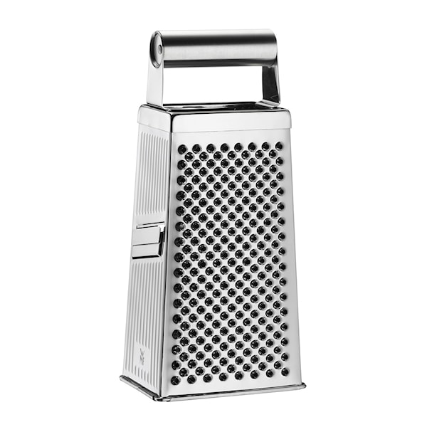 Det här skarpa rivjärnet från WMF består av fyra sidor med olika rivmöjligheter. Rivjärnets blad förblir vassa även efter lång tid av användning så att du kan riva, hyvla och strimla råvaror dagligen. Med det praktiska handtaget arbetar du enkelt med denna och dess grund står stabilt på köksbänken eller skärbrädan.