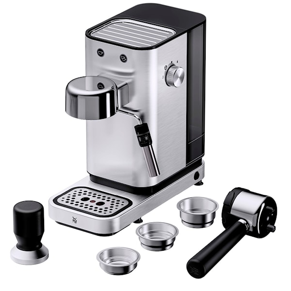 Lumero espressomaskin 1400W stål från WMF erbjuder kraftfull prestanda och sofistikerad design för den perfekta kaffeupplevelsen. Med sitt snabba Thermoblock-värmesystem är maskinen redo att brygga din espresso, cappuccino, latte macchiato, americano eller annan kaffedryck på mindre än en minut, alltid med optimal temperatur. Den har en effekt på 1400 W och ett tryck på 15 bar, vilket säkerställer att all smak och arom extraheras från kaffebönorna, oavsett om du brygger en enkel eller dubbel espresso.