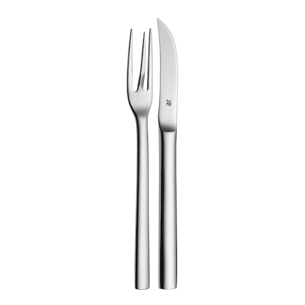 Det här set från WMF serien Nuova gör skalandet av potatis till en enkel match och är speciellt utformade för just detta. Gaffelns tre tänder bildar en triangel som stadigt håller potatisen på plats och med kniven skalar du smidigt potatisen. Besticken är tillverkade av Cromargan® rostfritt stål som tål diskmaskin och behåller en naturlig blank yta.
